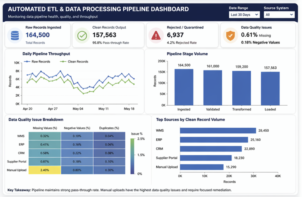In this project, I built a simple data pipeline to clean and prepare raw data for analysis. I focused on improving data accuracy and making the data ready for reporting.